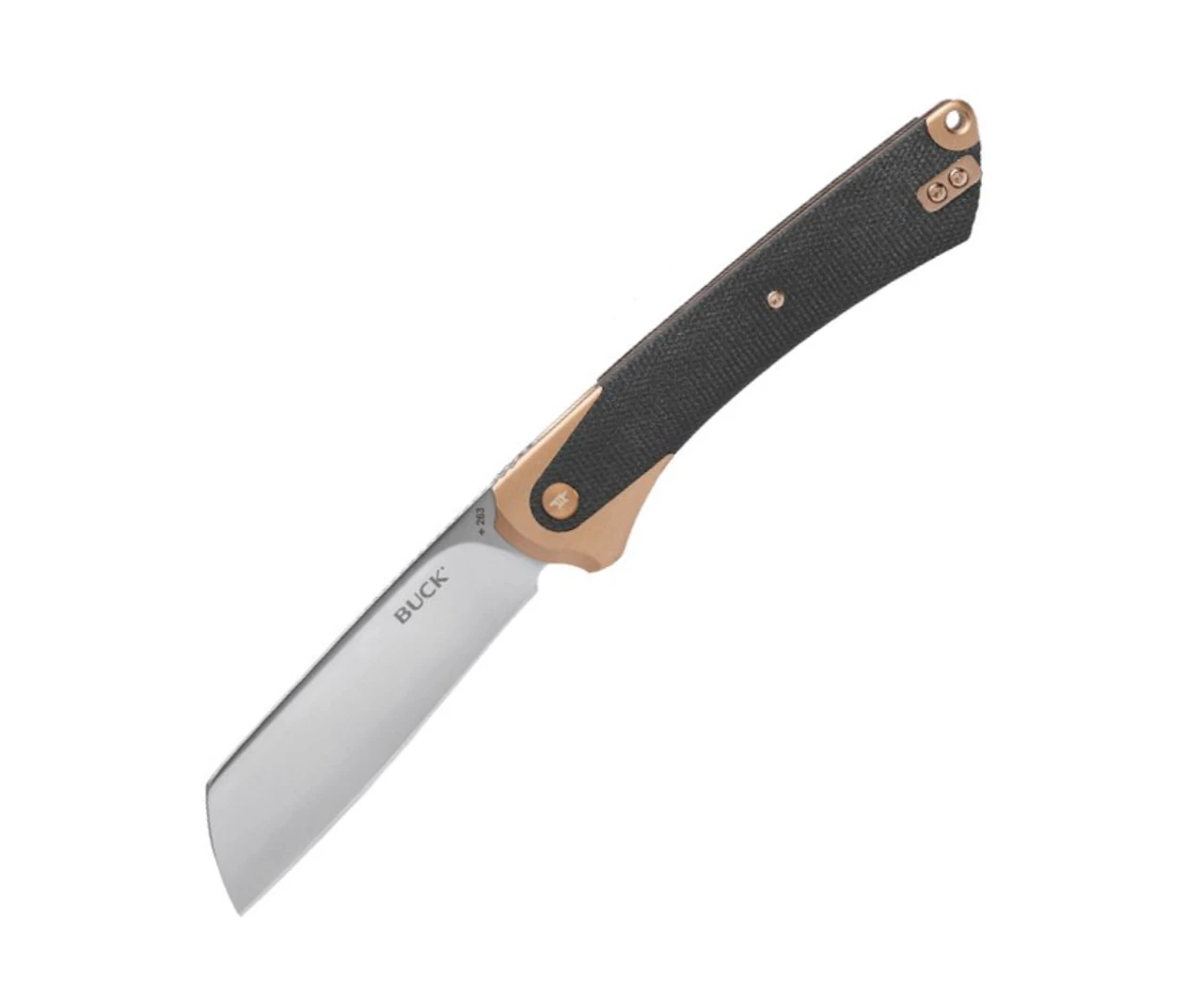 Buck Knives 263 Hiline XL Folding Knife (0263CPS1-B)- 3.75″ Stonewashed D2 Cleaver Blade, Copper Aluminum with Black G-10 Overlay Handle