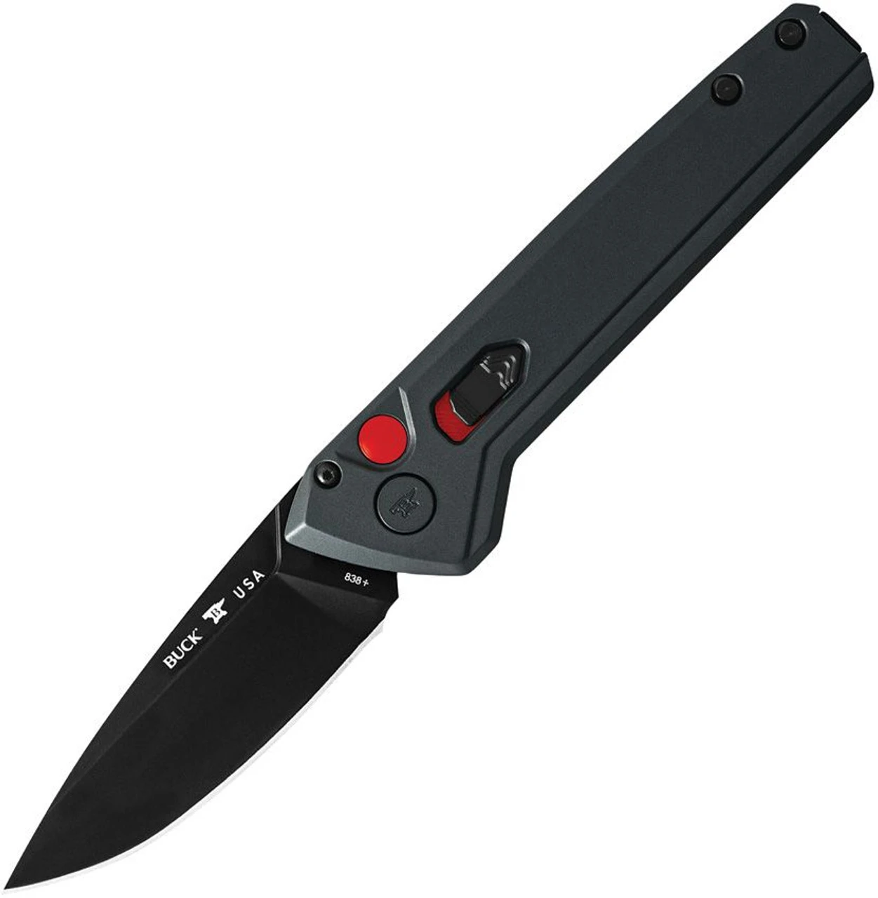 Buck Deploy Automatic (BU838GYS1) 3.25″ 154CM Black Cerakote Drop Point Plain Blade, Sniper Gray Coated Aluminum Handle