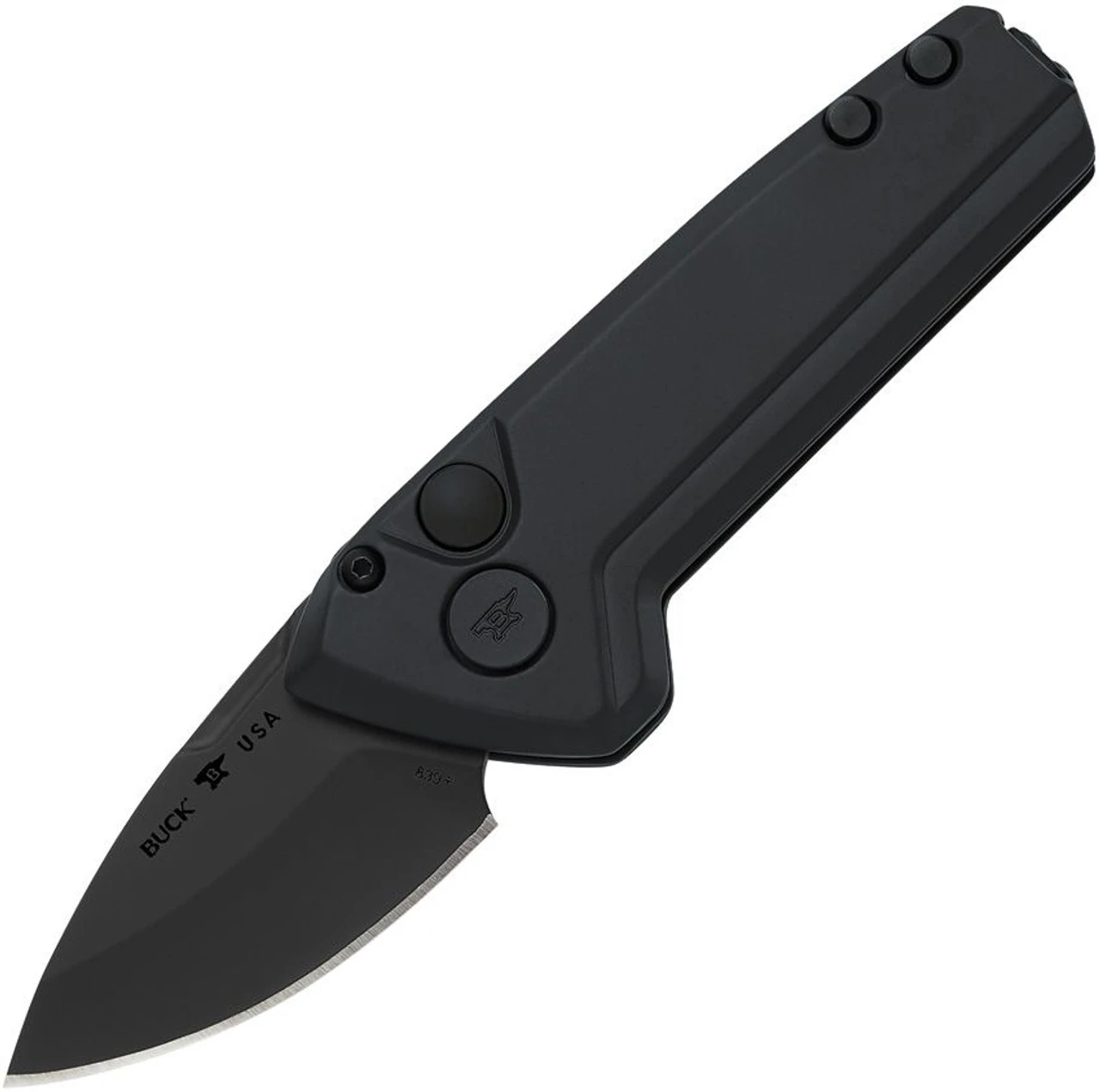 Buck Mini Deploy Blackout Automatic (BU839BKS) 1.875″ S35VN Armor Black Cerakote Drop Point Plain Blade, Armor Black Coated Aluminum Handle